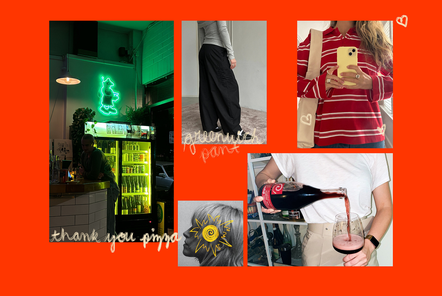 we arrived in the city and immediately drove to our oldest haunt. a space that has housed some of the biggest life decisions, health revelations, and general news of our adult lives. thank you pizza. philip greeted us with the world’s biggest smile, and we settled into our seats with a chilled carbonic red. i found myself caught in a real polo phase, wearing a red striped cutie with my new go-to (not denim) pants. we started with a parmesan dusted caesar, crisp greens and a salty bread crumb. as pineapple on pizza believers, we dug into a spicy hawaiian, lip- numbing rings of hot pepper cutting through the fattiness of the pork. the crust chewy and satisfying, ever the perfect sourdough tang. a classic margherita followed, as we dipped the slightly charred crust into blue cheese spiked homemade ranch. the crowd dwindled, and we caught up with the owner, devon, who was slinging pies that night. warmth spread over me, the result of coming back to a familiar place, or the wine? we will never know. philip brought us dessert, something i can only describe as deconstructed pumpkin pie. it was whimsical and nostalgic, yet fresh and exciting. we need to have more fun in dining. we drove home, too late given my early call time the following morning, scream singing to hayley williams new album.