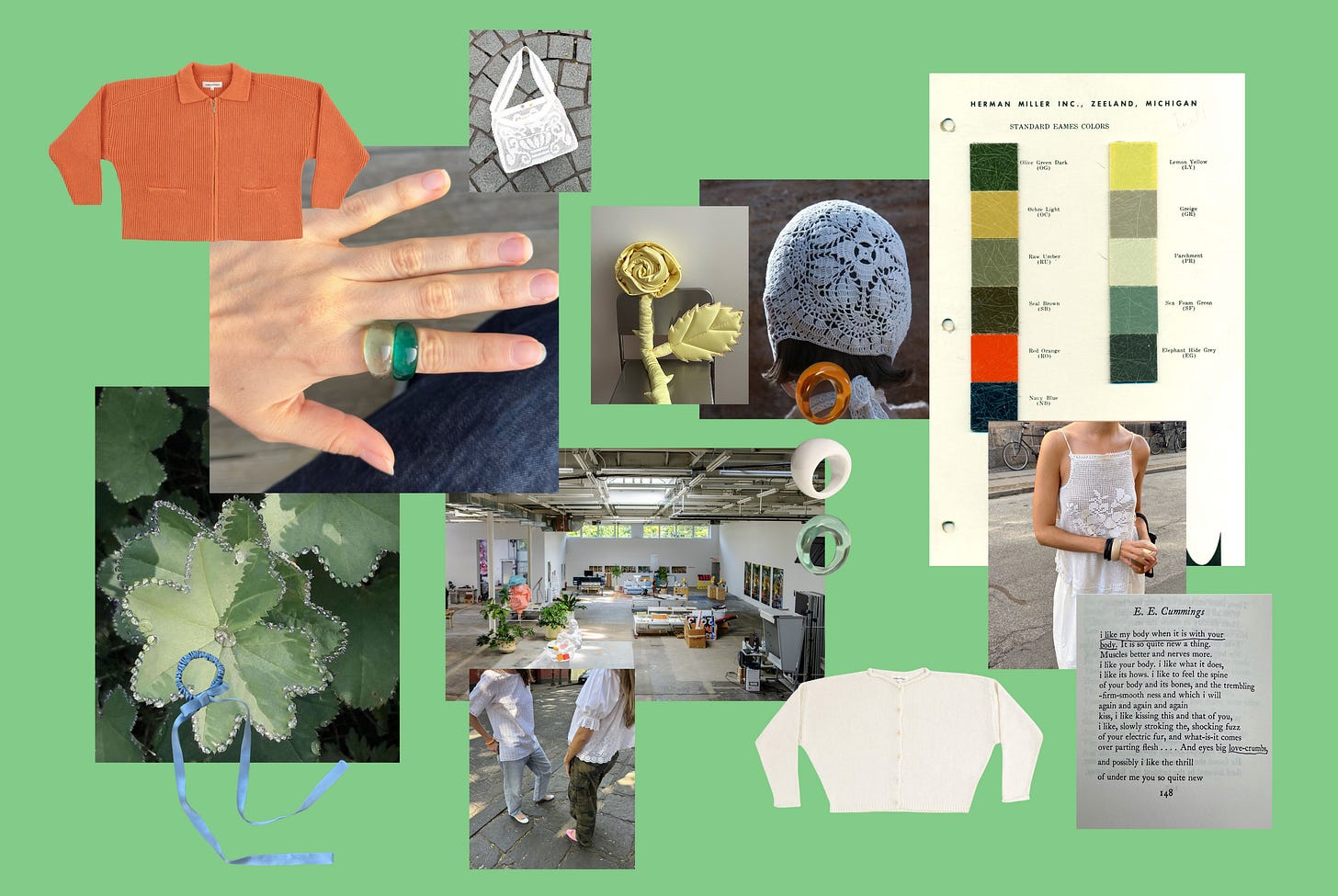 romance: michelle from magnetism sourced the sweetest, floatiest vintage white tops in thailand and she’s sharing her bounty. love that this top has a classic shape and print, but everything about them together feels fresh + exciting. honourable mention to this tissue box cover that i now feel i deserve after surviving a cold. what’s more romantic than coloured glass? i’ve recently found myself fawning over these sweet rings, the perfect accent to any outfit. i love the lace cuff of this top, i’ve already worn it many times over. the 90’s minimalist silhouette mixed with punchy plaid makes this my dream spring skirt. i plan to wear these lace scrunchies all the way though summer, while carrying this crochet bag, no less.